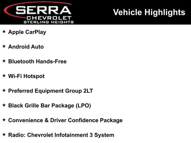 Recent Arrival! Clean CARFAX. This Chevrolet Blazer is well equipped and includes the following key features and benefits, Apple CarPlay, Android Auto, Bluetooth® Hands-Free, Wi-Fi Hotspot, 6-Speaker Audio System Feature, Apple CarPlay/Android Auto, Black Grille Bar LPO), Black Grille Bar Package (LPO), Convenience & Driver Confidence Package, Emergency communication system: OnStar and Chevrolet connected services capable, Exterior Parking Camera Rear, Front dual zone A/C, Heated Driver & Front Passenger Seats, Inside Rear-View Auto-Dimming Mirror, Lane Change Alert w/Side Blind Zone Alert, Outside Heated Power-Adjustable Body-Color Mirrors, Power driver seat, Preferred Equipment Group 2LT, Radio: Chevrolet Infotainment 3 System, Rear Cross Traffic Alert, Rear Park Assist w/Audible Warning, Rear Power Programmable Liftgate, Remote keyless entry, Remote Start, SiriusXM Radio, Universal Home Remote.Pewter Metallic 2021 Chevrolet Blazer LT FWD 4D Sport Utility 3.6L V6 SIDI DOHC VVT 20/27 City/Highway MPGThis Blazer LT is nicely equipped with Black Grille Bar Package (LPO) (Black Grille Bar LPO)), Convenience & Driver Confidence Package (Heated Driver & Front Passenger Seats, Inside Rear-View Auto-Dimming Mirror, Lane Change Alert w/Side Blind Zone Alert, Outside Heated Power-Adjustable Body-Color Mirrors, Rear Cross Traffic Alert, Rear Park Assist w/Audible Warning, Rear Power Programmable Liftgate, Remote Start, and Universal Home Remote), Preferred Equipment Group 2LT, 6-Speaker Audio System Feature, Apple CarPlay/Android Auto, Emergency communication system: OnStar and Chevrolet connected services capable, Exterior Parking Camera Rear, Front dual zone A/C, Power driver seat, Radio: Chevrolet Infotainment 3 System, Remote keyless entry, SiriusXM Radio, 155 Amp Alternator, 170 Amp Alternator, 4-Wheel Disc Brakes, 6 Speakers, ABS brakes, Air Conditioning, Alloy wheels, AM/FM radio: SiriusXM, Auto High-beam Headlights, Automatic temperature control, Brake assist, Bumpers: body-color, Child-Seat-Sensing Airbag, Compass, Delay-off headlights, Driver door bin, Driver vanity mirror, Dual front impact airbags, Dual front side impact airbags, Electronic Stability Control, Four wheel independent suspension, Front anti-roll bar, Front Bucket Seats, Front Center Armrest, Front reading lights, Fully automatic headlights, Heated door mirrors, High-Intensity Discharge Headlights, Illuminated entry, Knee airbag, Leather Shift Knob, Low tire pressure warning, Occupant sensing airbag, Outside temperature display, Overhead airbag, Overhead console, Panic alarm, Passenger door bin, Passenger vanity mirror, Power door mirrors, Power steering, Power windows, Premium Cloth Seat Trim, Radio data system, Rear anti-roll bar, Rear reading lights, Rear seat center armrest, Rear window defroster, Rear window wiper, Ride & Handling Suspension, Security system, Speed control, Speed-sensing steering, Split folding rear seat, Spoiler, Steering wheel mounted audio controls, Tachometer, Telescoping steering wheel, Tilt steering wheel, Traction control, Trip computer, Variably intermittent wipers, Voltmeter, and Wheels: 18 Bright Silver Aluminum.At Serra Chevrolet Sterling Heights, our award-winning team takes great pride in serving the Sterling Heights, Clinton Township, Macomb, and Detroit Metro area. No matter what you are looking for in Used or CarBravo certified vehicles, you can rest assured we are ready to make your purchase a dream and get you into the right car, truck, or SUV for your lifestyle and budget. See how at Serra Chevrolet Sterling Heights, the customer is #1!Awards:* JD Power Automotive Performance, Execution and Layout (APEAL) Study
