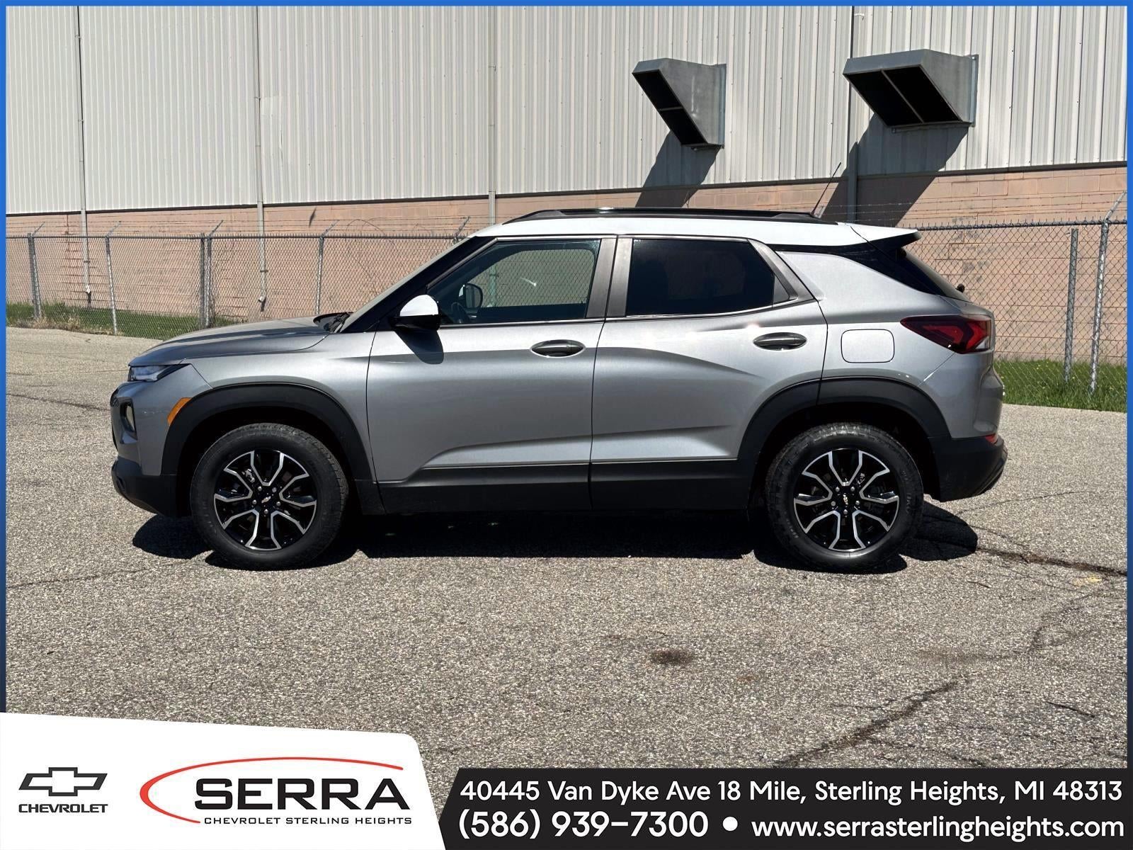 Why BUY from Serra Chevrolet Sterling Heights? When you choose this Sterling Gray Metallic 2023 Chevrolet Trailblazer ACTIV with 0 miles, you are not just buying a used vehicle - you are investing in quality, reliability and peace of mind. Our clientele depend on us for Transparent Pricing, Convenience and, most importantly, Customer FIRST Service! What this vehicle includes: Convenience Package ($520 value)Single-Zone Auto Climate Control Air ConditioningInside Rearview Auto-Dimming MirrorDriver and Front Passenger Illuminated Vanity Mirrors120-Volt Power Outlet8" Diagonal Color Touchscreen Display1 type-A and 1 type-C USB Charging-Only PortsDriver Confidence Package ($345 value)Rear Park AssistRear Cross Traffic AlertLane Change Alert with Side Blind Zone AlertTechnology Package ($1,620 value)Chevrolet Infotainment 3 Plus System RadioWireless ChargingAdaptive Cruise ControlLED Headlamps4.2" Diagonal Multi-Color Driver Info CenterHD Rear Vision CameraPreferred Equipment Group 1SAFront Bucket Seats4,409 lbs (2,000 Kgs) GVWR3.17 Axle Ratio1.3L Ecotec Turbo DOHC SIDI Engine with Variable Valve Timing9-Speed Automatic Transmission17" High Gloss Black Machined Aluminum Wheels225/60R17 Sport Terrain BW TiresLeatherette Seat TrimHeated Steering WheelFront License Plate Bracket ($40 value) Safety and Security Forward collision mitigation - Forward thinking. You look away for just a second and suddenly the vehicle in front of you has stopped. That's when the forward collision mitigation system comes to life. When it senses an impending impact, it will activate a combination of features to help prevent or reduce the severity of an accident. Forward collision mitigation is always looking ahead. Pedestrian impact prevention - An extra step toward safety. Pedestrians don't always stop, look, and listen, but with Pedestrian Impact Prevention, your vehicle is equipped to better see them and avoid them. This system constantly monitors the road ahead to identify and track pedestrians. It projects that image to an interior display screen, AND should an impact become likely, Pedestrian impact prevention takes steps to avoid a collision. Rear camera - Watching your back! The rear camera helps you see obstacles and hazards you otherwise couldn't by showing enhanced images of what is behind you. The rear camera is an extra set of eyes that's both convenient and safe.Technology and Telematics Wireless Apple CarPlay/Wireless Android Auto smart device wireless mirroring Mobile hotspot - WiFi on the fly. Connect your devices to the Internet through your vehicles private mobile hotspot and take the internet wherever your journey takes you, without eating up your data allowance. Find the hotspot with mobile hotspot. EMISSIONS, FEDERAL REQUIREMENTS, EMISSIONS OVERRIDE, CALIFORNIA, ENGINE, ECOTEC 1.3L I3 TURBO DOHC SIDI WITH VARIABLE VALVE TIMING (VVT), TRANSMISSION, 9-SPEED AUTOMATIC, AXLE, 3.17 FINAL DRIVE RATIO, STERLING GRAY METALLIC, SUMMIT WHITE TWO-TONE ROOF, SEATS, FRONT BUCKET, JET BLACK WITH ARIZONA ACCENTS, LEATHERETTE SEAT TRIM, AUDIO SYSTEM, CHEVROLET INFOTAINMENT 3 PLUS SYSTEM, TECHNOLOGY PACKAGE, CONVENIENCE PACKAGE, DRIVER CONFIDENCE PACKAGE, HEADLAMPS, LED, LICENSE PLATE BRACKET, FRONT, AUDIO SYSTEM FEATURE, BOSE PREMIUM 7-SPEAKER SYSTEM, HD RADIO, AUDIO SYSTEM FEATURE, MEMORY CARD RECEPTACLE, POWER OUTLET, 120-VOLT, USB CHARGING-ONLY PORTS, WIRELESS CHARGING, DRIVER INFORMATION CENTER, ENHANCED, 4.2" DIAGONAL MULTI-COLOR DISPLAY, ADAPTIVE CRUISE CONTROL, AIR CONDITIONING, SINGLE-ZONE AUTOMATIC CLIMATE CONTROL, SENSOR, CABIN HUMIDITY, MIRROR, INSIDE REARVIEW AUTO-DIMMING, VISORS, DRIVER AND FRONT PASSENGER ILLUMINATED VANITY MIRRORS, COVERED, SLIDING, HD REAR VISION CAMERA, REAR PARK ASSIST, NOT EQUIPPED WITH REAR PARK ASSIST, REAR CROSS TRAFFIC ALERT, LANE CHANGE ALERT WITH SIDE BLIND ZONE ALERT Come on in to Serra Chevrolet Sterling Heights today at 40445 Van Dyke Avenue Sterling Heights MI 48313 or call (586) 933-5557 to schedule a tes