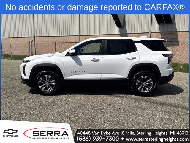 Recent Arrival! Clean CARFAX. CARFAX One-Owner. This Chevrolet Equinox is well equipped and includes the following key features and benefits, Apple CarPlay, Android Auto, Bluetooth® Hands-Free, Wi-Fi Hotspot, Driver 6-Way Manual Seat Adjuster, Emergency communication system: OnStar and Chevrolet connected services capable, Front Passenger 4-Way Manual Seat Adjuster, Heated Driver & Front Passenger Seats, Navigation System, Preferred Equipment Group 1LT, Premium audio system: Chevrolet Infotainment 3, Radio: 11.3 Diagonal Advanced Color LCD Display, Remote keyless entry, SiriusXM.Summit White 2025 Chevrolet Equinox LT FWD 4D Sport Utility 1.5L DOHC 26/28 City/Highway MPGThis vehicle has been thoroughly inspected and qualifies for CarBravo certification. Speak with your Sales Associate for details of the program. We have provided a few bullet points below to share what the CarBravo certification entails!At Serra Chevrolet Sterling Heights, our award-winning team takes great pride in serving the Sterling Heights, Clinton Township, Macomb, and Detroit Metro area. No matter what you are looking for in Used or CarBravo certified vehicles, you can rest assured we are ready to make your purchase a dream and get you into the right car, truck, or SUV for your lifestyle and budget. See how at Serra Chevrolet Sterling Heights, the customer is #1!